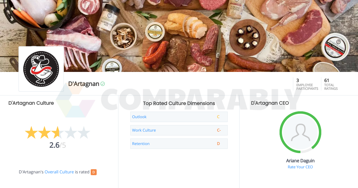 The company has strong values and a driven work ethic that motivates it employees. . For inquiries related to our company, products, as well as d'artagnan purchases made at the d'artagnan website or at a d'artagnan retailer.